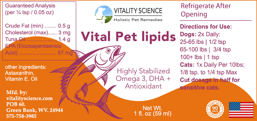 - Includes Celloquent Gold powder, Vital Pet Lipids fish oil & Hemp Seed CBD oil.