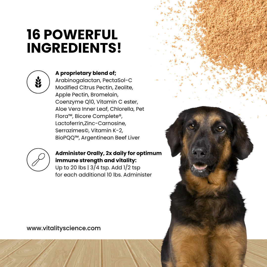 Vitality Science offers excellent customer support, we work with you to choose the right food, identify potential toxins in your home, and guide your supplementation. Our goal is results and if you do not get them, then we will refund your money. Please contact our pet health experts for any questions about our products (how to use, dosages, updates) we love to hear from you!