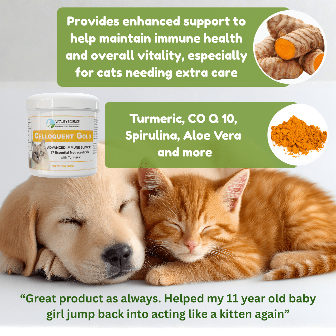 Celloquent Gold combines 17 different all-natural, clinically proven ingredients! This combination of the most effective and premium ingredients on the planet supports your cat’s immune system.